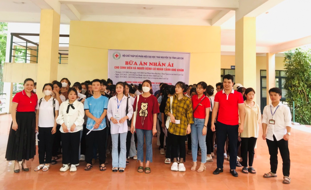 Với mong muốn tiếp tục lan tỏa tinh thần nhân ái, nhân văn; phát huy truyền thống “nhường cơm sẻ áo” và “lá lành đùm lá rách”, Hội Chữ thập đỏ cơ sở Phân hiệu ĐHTN tại tỉnh Lào Cai đã triển khai thực hiện Chương trình “Nghìn bữa ăn Nhân ái” cho sinh viên và bệnh nhân nghèo.