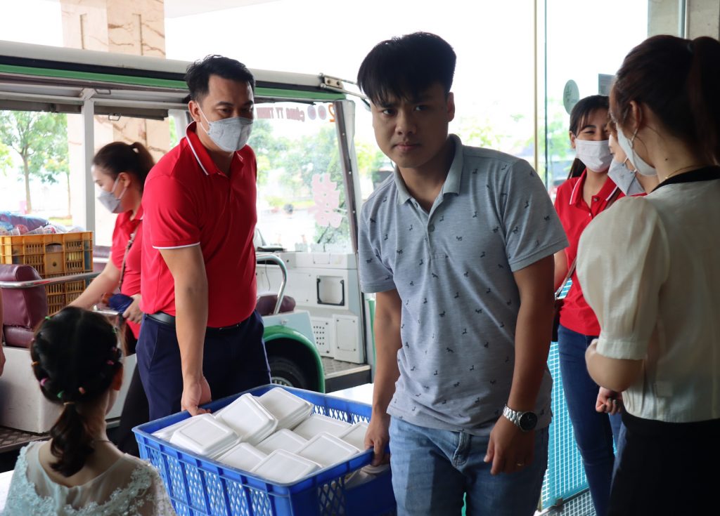Agribank chi nhánh Kim Thành II đại diện nhóm các cơ quan, doanh nghiệp ủng hộ chương trình, tham gia trao cơm cho sinh viên và người bệnh có hoàn cảnh khó khăn
