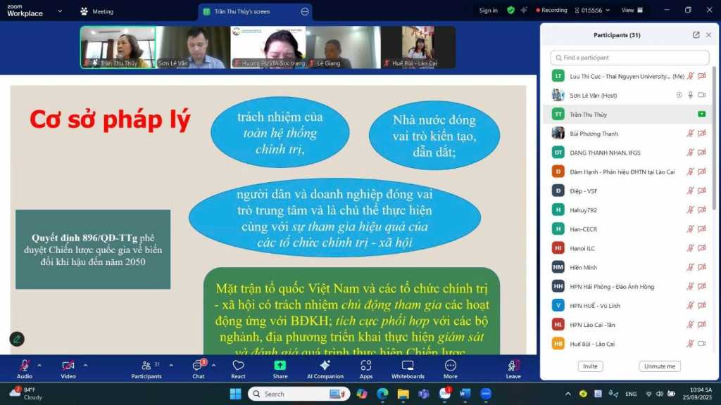 Sáng ngày 25/9/2025, Phân hiệu Đại học Thái Nguyên tại tỉnh Lào Cai đã tham dự Hội thảo tham vấn “Chia sẻ kết quả nghiên cứu và khuyến nghị tăng cường hành động của Hội Liên hiệp Phụ nữ Việt Nam các cấp trong thực hiện Chiến lược quốc gia về biến đổi khí hậu”. Hội thảo do GFCD phối hợp UN Women tổ chức, với sự tham gia của đại diện nhiều cơ quan, tổ chức quốc tế, Hội Liên hiệp Phụ nữ các tỉnh, thành phố và các chuyên gia trong lĩnh vực giới và biến đổi khí hậu.