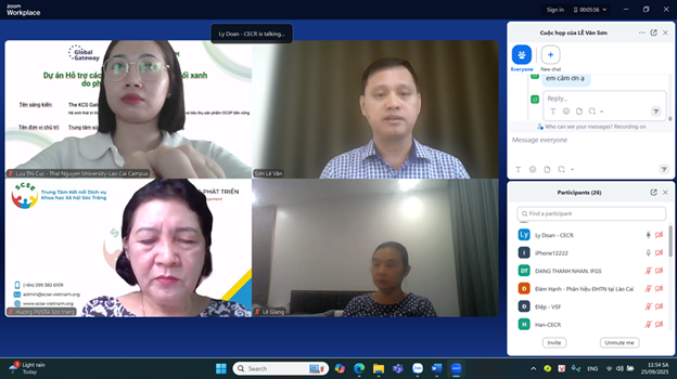 Về nguồn lực tài chính, ThS. Lưu Thị Cúc nhất trí cần đa dạng hóa nguồn vốn (ngân sách địa phương, quỹ xanh, donor). Đặc biệt, chia sẻ mô hình “tài chính lai” mà Lào Cai đang xây dựng với sự phối hợp của Phân hiệu ĐHTN tại tỉnh Lào Cai, Sở KH&CN và ngân hàng chính sách để hỗ trợ khởi nghiệp sinh kế xanh cho phụ nữ, bao gồm cả gói vay vi mô không cần tài sản đảm bảo.