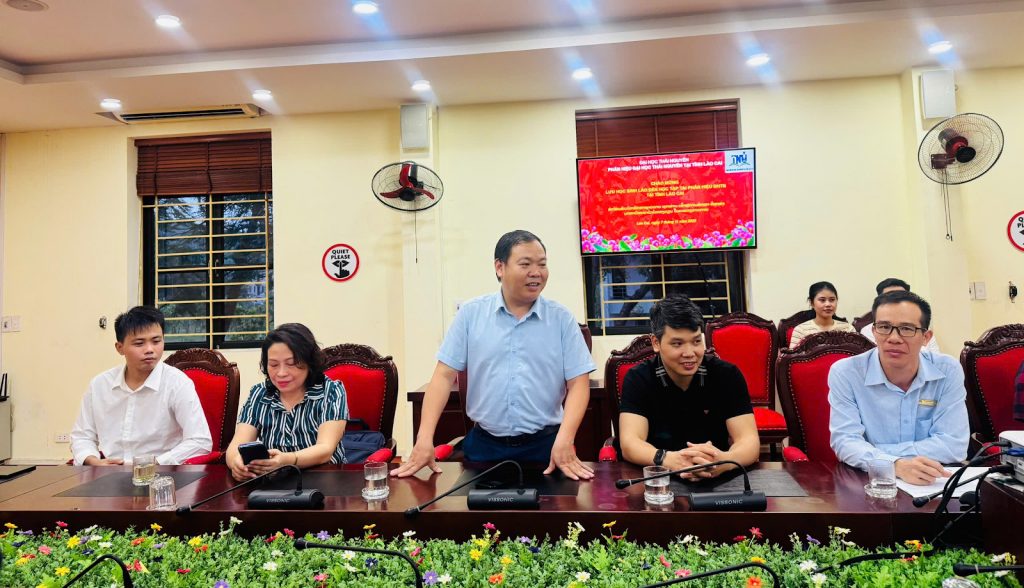 Phát biểu tại buổi làm việc, Đại tá, TS. Nguyễn Đức Phú – Phó Chỉ huy trưởng Bộ CHQS tỉnh Lào Cai trân trọng cảm ơn sự hợp tác, hỗ trợ nhiệt tình của Phân hiệu Đại học Thái Nguyên tại tỉnh Lào Cai đối với các sinh viên Lào trong thời gian qua.