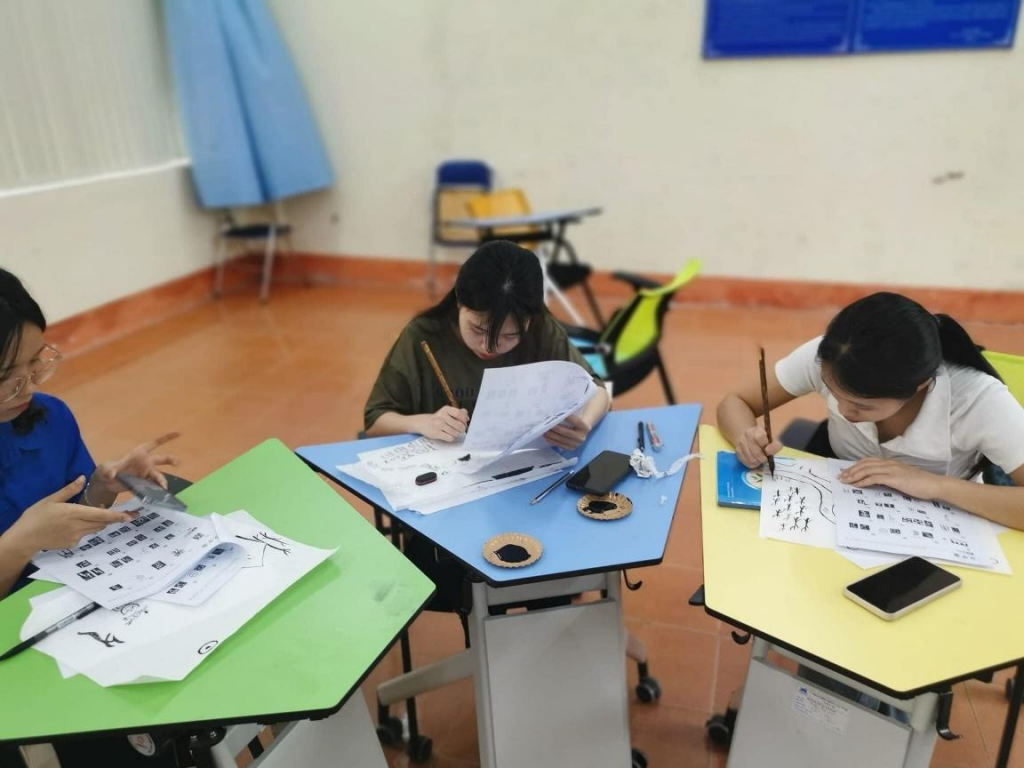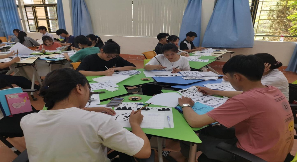 Vẽ tranh bằng chữ Hán của sinh viên