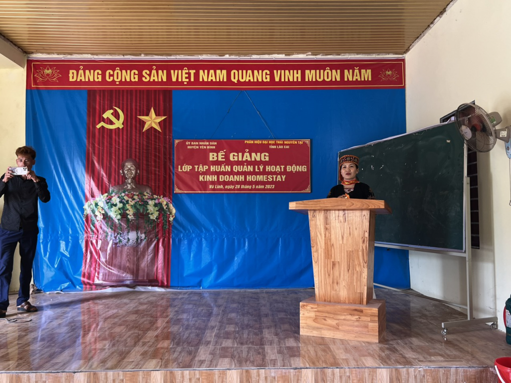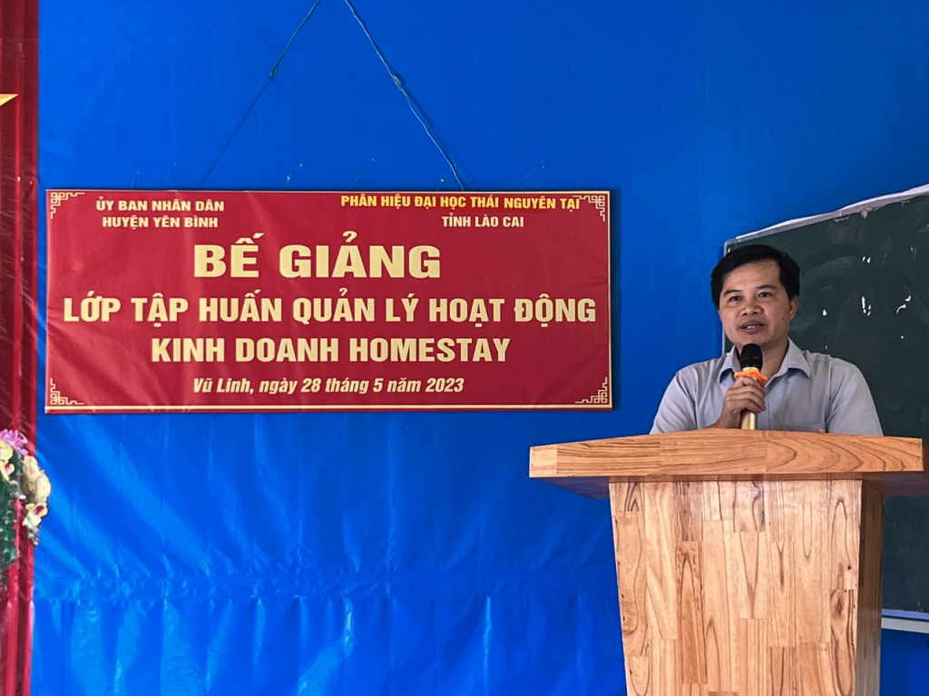 Thực hiện kế hoạch số 177/KH-UBND-PHĐHTNLC, ngày 23/05/2023, Phân hiệu Đại học Thái Nguyên tại tỉnh Lào Cai phối hợp với huyện Yên Bình đã tổ chức khai giảng lớp tập huấn “Quản lý hoạt động kinh doanh homestay” cho các hộ kinh doanh du lịch cộng đồng, homstay tại xã Vũ Linh, huyện Yên Bình, tỉnh Yên Bái.