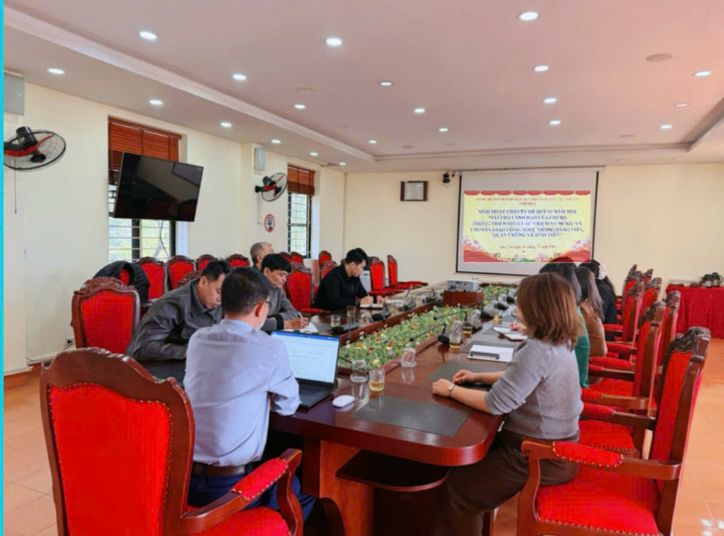 Thực hiện Chương trình công tác năm 2025 của Đảng uỷ Phân hiệu ĐHTN tại tỉnh Lào Cai, sáng ngày 26/11/2025, Chi bộ 2 đã tổ chức buổi sinh hoạt chuyên đề Quý IV với chủ đề “Vai trò lãnh đạo của Chi bộ trong triển khai các nhiệm vụ nghiên cứu khoa học và chuyển giao công nghệ trong đảng viên, quần chúng và sinh viên”. Tham dự buổi sinh hoạt có đồng chí Ninh Anh Đại, Bí thư Chi bộ chủ trì cùng toàn thể đảng viên trong Chi bộ.