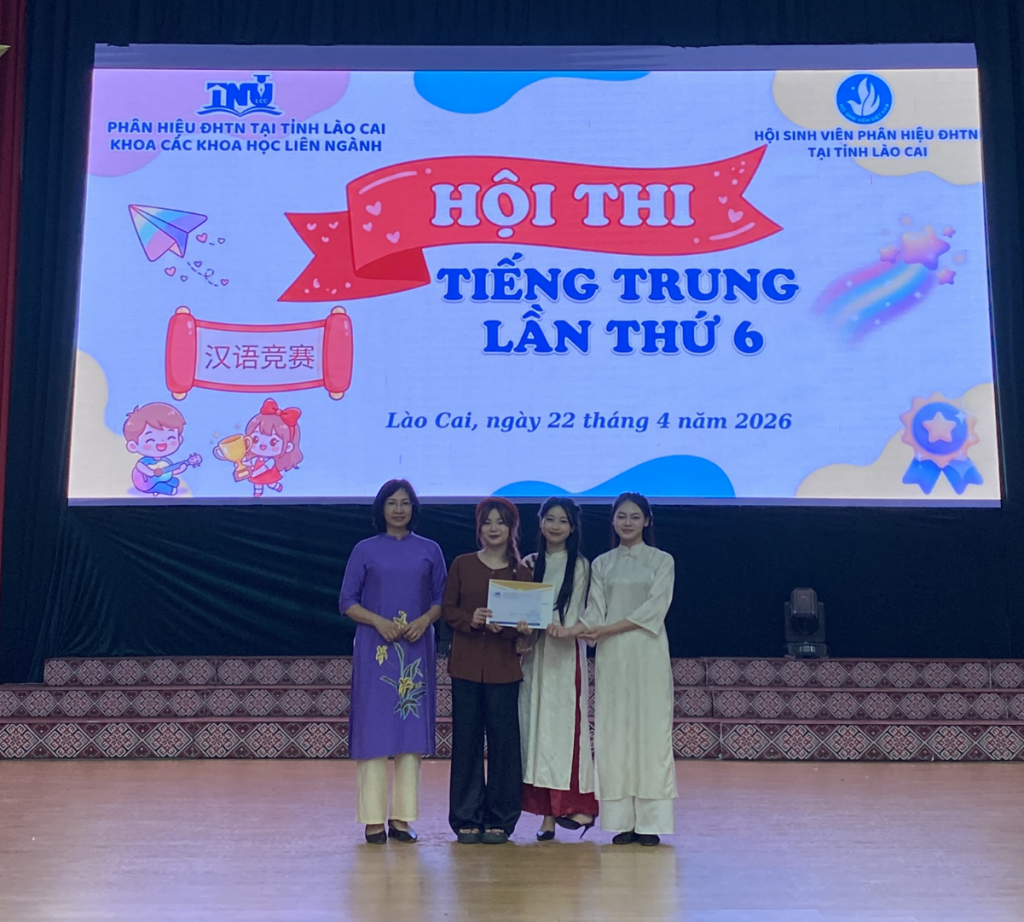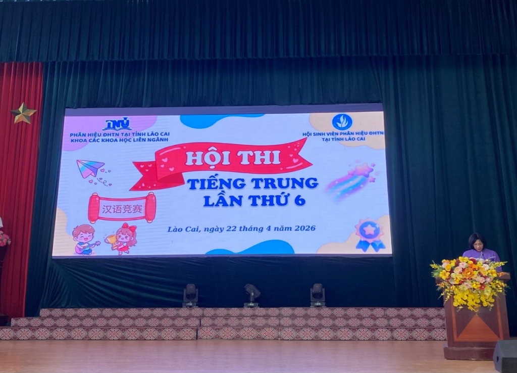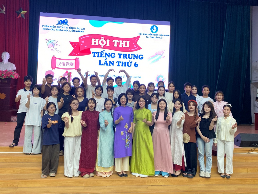 Chiều ngày 22/4/2026, tại Hội trường đa năng Phân hiệu Đại học Thái Nguyên tại tỉnh Lào Cai, “Ngày hội Tiếng Trung” năm 2026 đã diễn ra vô cùng thành công và đọng lại nhiều cảm xúc. Tham dự chương trình có TS Nguyễn Hoàng UVBCH Đảng bộ, Phó Giám đốc Phân hiệu ĐHTN tại tỉnh Lào Cai, lãnh đạo các phòng khoa, Đoàn Thanh niên và Hội sinh viên cùng toàn thể cán bộ giảng viên và sinh viên Khoa Các khoa học Liên ngành. Hội thi là một sự kiện mang tính truyền thống của khoa Các khoa học Liên ngành bởi đây là năm thứ 6 hoạt động được tổ chức và luôn được đông đảo sinh viên mong chờ và nhiệt tình đón nhận. Cuộc thi không chỉ tôn vinh vẻ đẹp phong phú của ngôn ngữ mà còn gắn kết mạnh mẽ cộng đồng sinh viên có chung niềm đam mê. Mục tiêu cốt lõi của hội thi là giúp các bạn trẻ nâng cao kỹ năng thực hành tiếng Trung một cách tự nhiên và hiệu quả nhất, bồi dưỡng tình yêu và sự gắn bó của sinh viên đối với tiếng Trung Quốc. Cuộc thi không chỉ là nơi kiểm tra sách vở, mà là một sân chơi để sinh viên thực sự sống và tận hưởng ngôn ngữ mình đang theo học, kích thích tinh thần học tập hăng say, lan tỏa phong trào học ngoại ngữ trong toàn trường. Xa hơn nữa, hội thi còn là bệ phóng tuyệt vời để sinh viên phát triển toàn diện năng lực tổ chức, làm việc nhóm và sự tự tin khi giao tiếp trước đám đông.